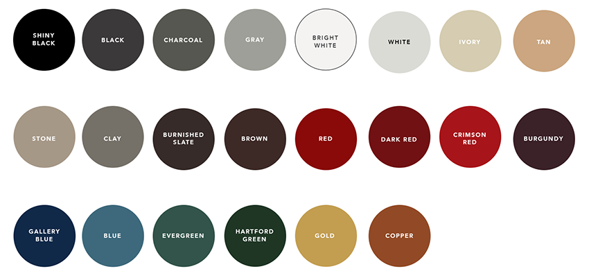 Colonial or Traditional: Black, dark gray, or dark brown.